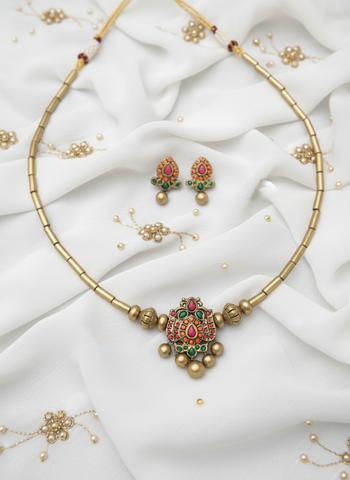 Thangamalar 2- golden terracotto necklace set