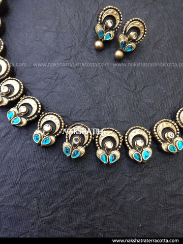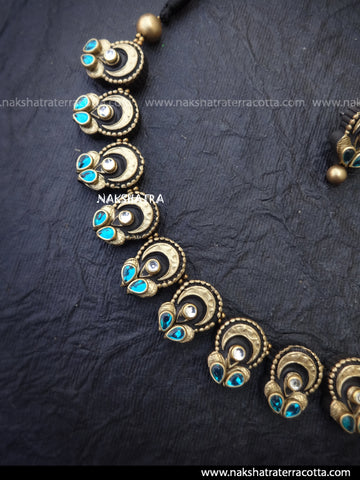 Kundan stones are pasted on terracotta jewellery