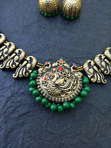 Full peocock terracotta jewellery set