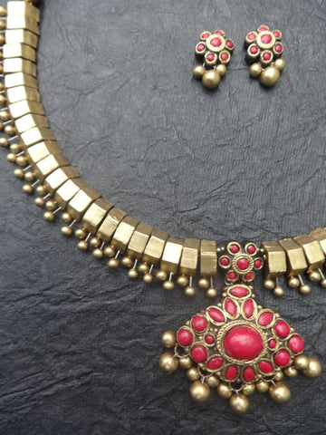 Devika- golden terracotto necklace set