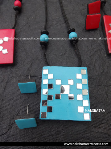 Blue simple terracotta jewellery set