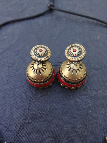 Celebrate tradition with our beautifully handcrafted Terracotta Jhumka Collection. Each pair is carefully designed with intricate detailing, vibrant colors, and antique gold finishing that reflects timeless Indian artistry. From Lakshmi motifs to elegant stone studs and colorful thread work, every jhumka carries a unique charm.
